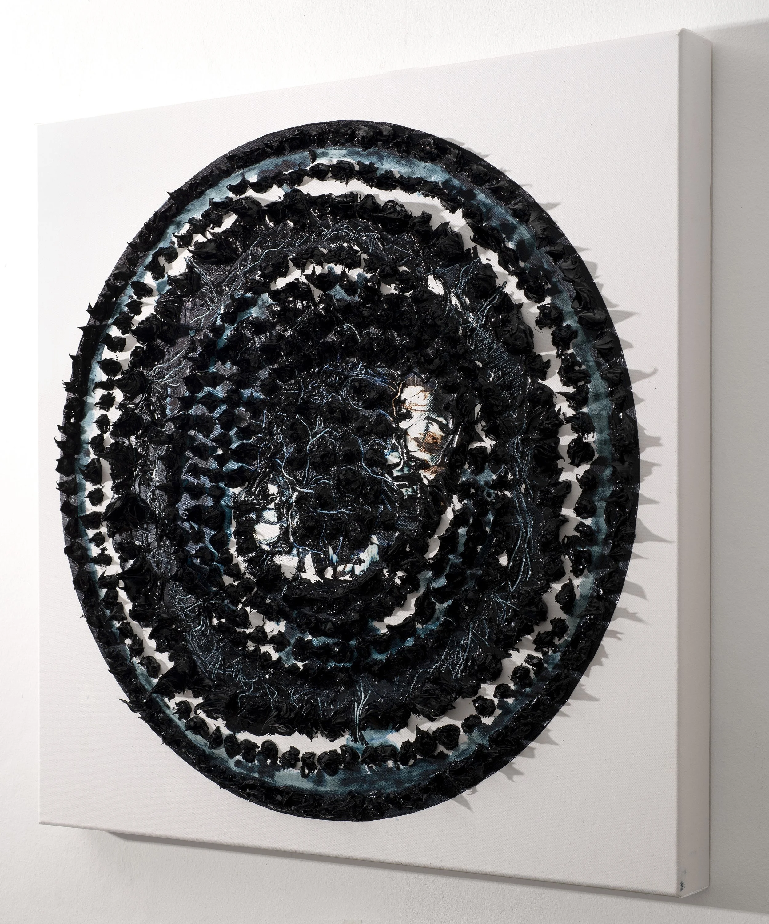 This followed on from her 2022 solo exhibition Opening where she explored the transformation of something hidden into that which demands to be seen, and her solo show Monochrome in 2018. Prior to this, Chequered in 2015 was inspired by her human rights work in Afghanistan. Her earliest works were predominantly Cathartic, communicating her deepest emotions.